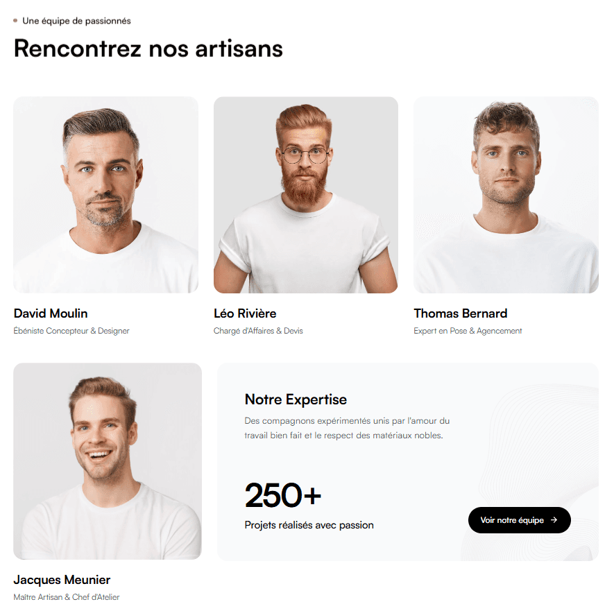Micro-Interactions : Ajout d'animations subtiles au survol (hover) qui rappellent le toucher velouté du bois poncé, renforçant l'aspect premium sans alourdir la navigation.